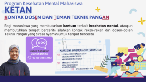 For students who need help related to mental health or need a place to share personal things, please contact colleagues and Food Engineering lecturers whom you feel comfortable to tell your stories. There are several lecturers and students who become counselors, namely: